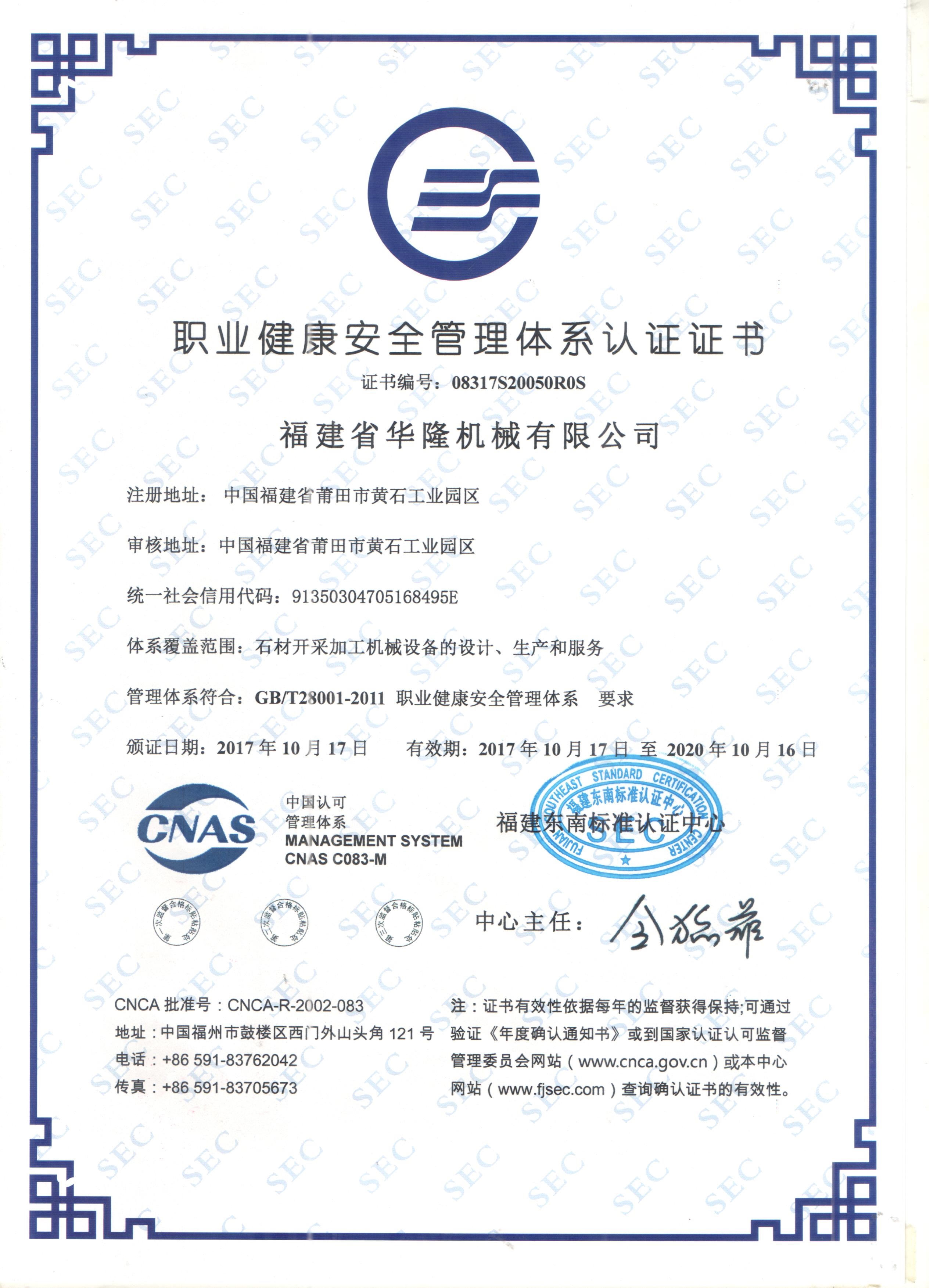 职业安康宁静办理系统认证证书