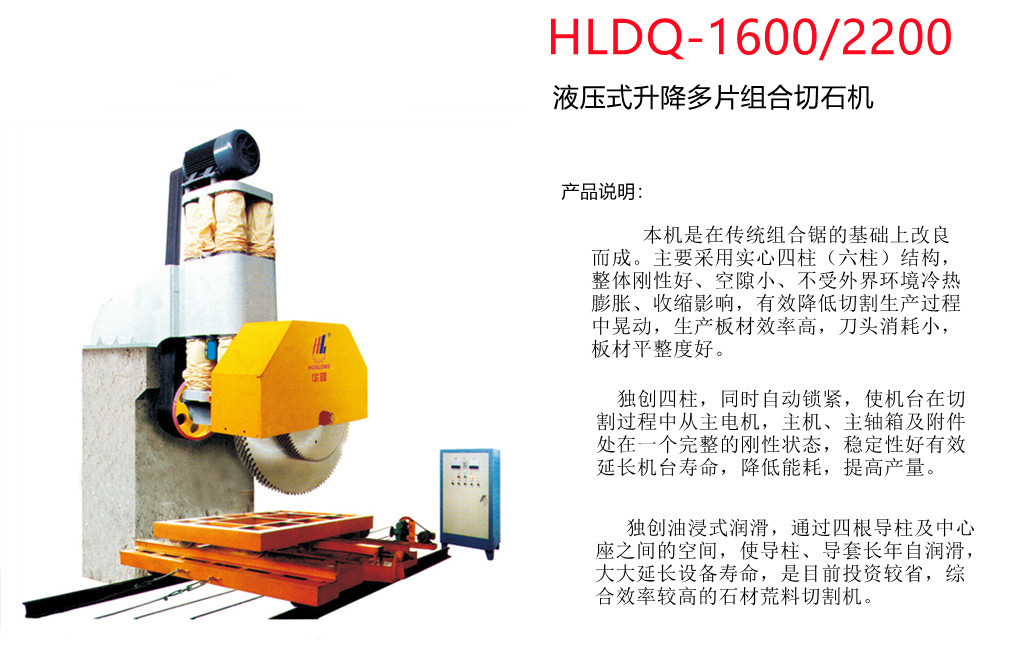 Hydraulic Lift Mu𒀰lit-blade Stone Cutting Machine HLDQ-1600 is💫 suitable for cutting stone blocks, such as granite, marble.